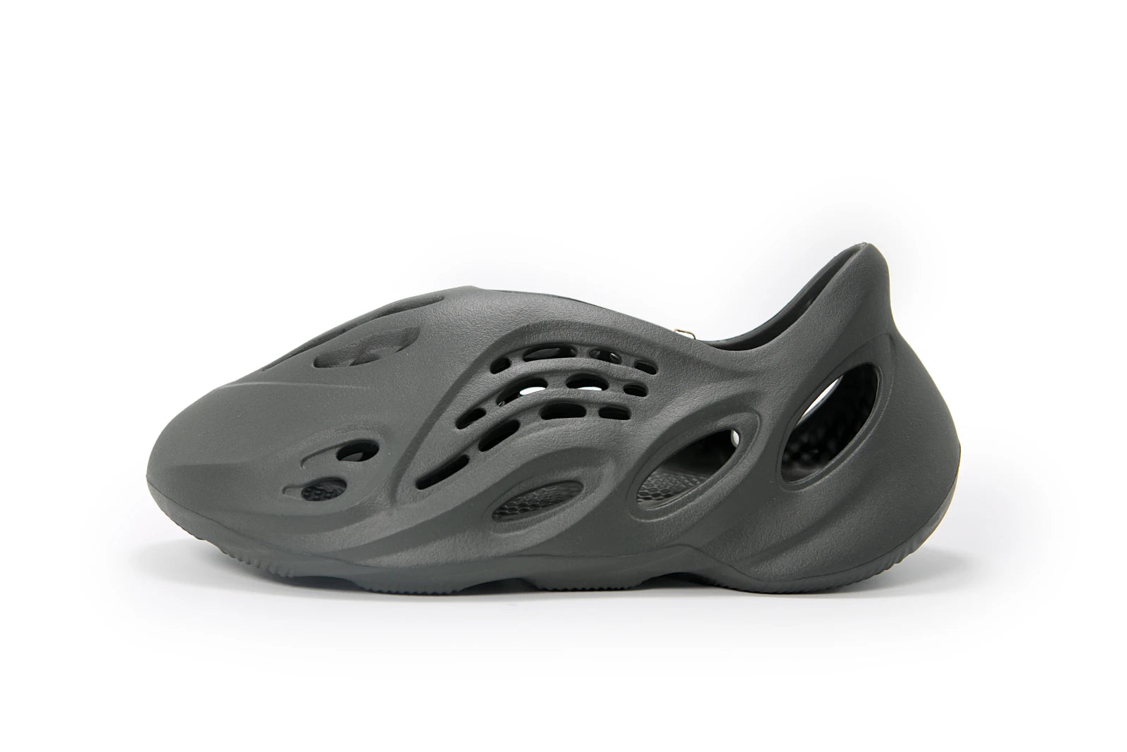 Der Adidas Yeezy Foam RNR Onyx kombiniert futuristisches Design mit minimalistischem Stil und gehört zu den progressivsten Silhouetten der Yeezy-Linie. Die vollständig schwarze Onyx-Farbgebung unterstreicht die skulpturale Form des Schuhs, die aus einer innovativen Mischung aus EVA-Schaum und Algenmaterial gefertigt ist. Diese Materialkombination sorgt nicht nur für Nachhaltigkeit, sondern verleiht dem Foam RNR auch seine außergewöhnliche Leichtigkeit und Flexibilität. Die oval ausgeschnittene Konstruktion bietet optimale Belüftung, während das gepolsterte Fußbett einen weichen, stabilen Stand ermöglicht und jeden Schritt angenehm abfedert. Die markante Außensohle mit tiefem, plastischem Profil sorgt für zuverlässigen Grip und macht den Schuh trotz seines futuristischen Aussehens alltagstauglich. Der Yeezy Foam RNR Onyx ist ein Statement-Piece für alle, die moderne Ästhetik und hohen Tragekomfort vereinen möchten. Durch seinen Slip-On-Charakter, die besondere Materialstruktur und den komplett schwarzen Look passt er sowohl zu urbanen Outfits als auch zu minimalistischen Streetwear-Styles und bleibt einer der gefragtesten Modelle innerhalb der Foam-RNR-Serie.