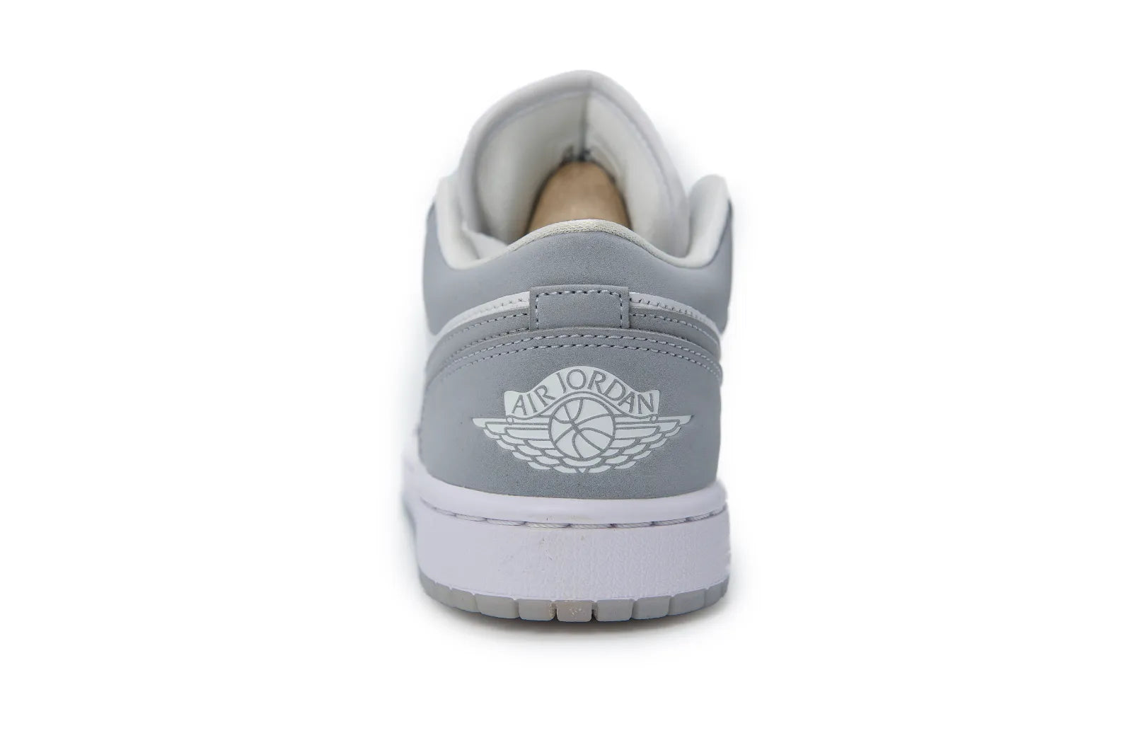 Das Upper aus hochwertigem Leder sorgt für eine saubere Optik, angenehmen Tragekomfort und langlebige Qualität. Die hellgrauen Overlays harmonieren perfekt mit den weißen Flächen und unterstreichen die klassische Linienführung des Jordan 1. Typische Details wie die perforierte Toe Box, der ikonische Swoosh und das Wings-Logo an der Ferse bewahren den authentischen Jordan-Heritage-Charakter, während die Low-Top-Form für ein leichtes, bequemes Tragegefühl sorgt.
