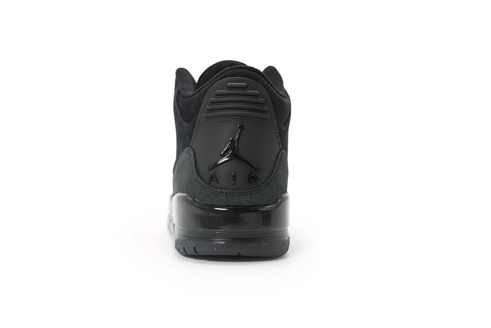 Die schwarze Mittelsohle mit sichtbarer Air-Unit sorgt für das klassische Tragegefühl, das den Jordan 3 seit 1988 berühmt gemacht hat. Die Außensohle setzt auf ein gleichmäßig dunkles Profil, das den monochromen Gesamteindruck unterstreicht und dem Sneaker seine unverwechselbare Präsenz verleiht. Der Black Cat 2025 ist nicht nur ein Schuh, sondern ein Statement — clean, mutig und absolut zeitlos.