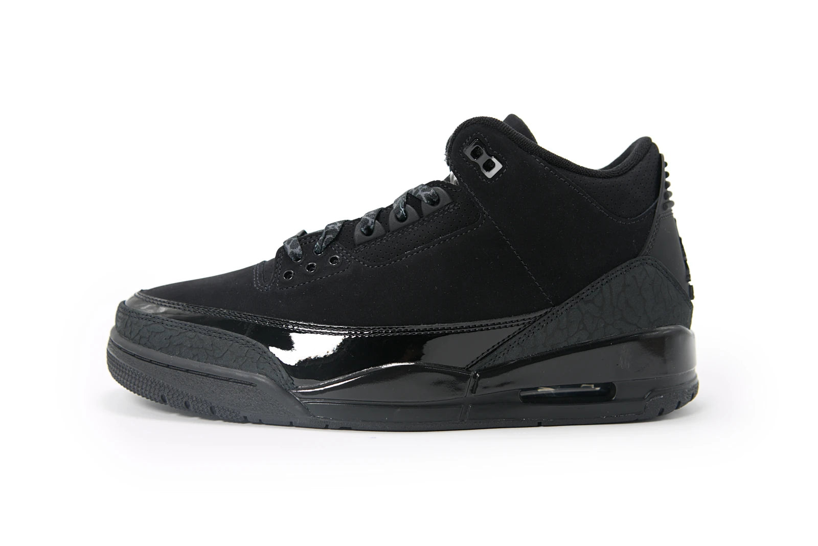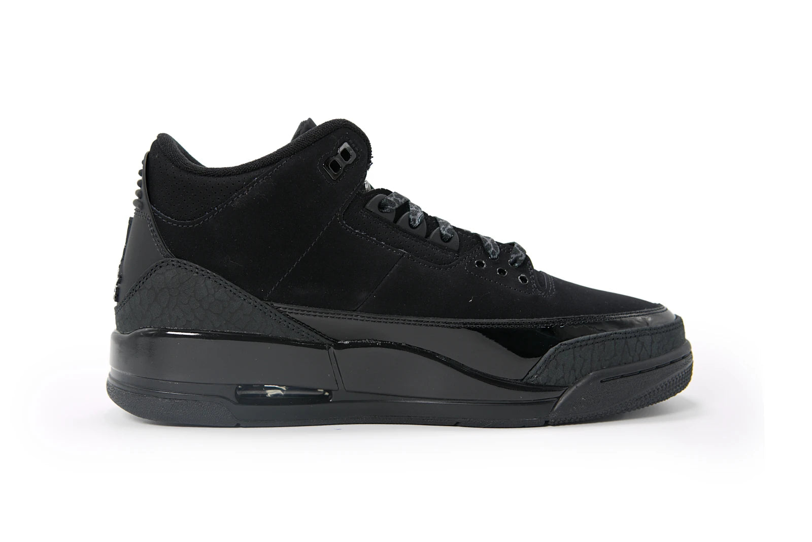 Das Obermaterial besteht aus einer luxuriösen Kombination aus schwarzem Nubuk, glattem Leder und texturierten Einsätzen, die dem Schuh Tiefe und Charakter verleihen. Besonders markant sind die tonal gehaltenen Elephant-Print-Overlays, die die DNA des Air Jordan 3 perfekt einfangen, ohne den minimalistischen Look zu durchbrechen. Durch subtile Glanz- und Mattkontraste wirkt der Black Cat zugleich edel, kraftvoll und extrem vielseitig.