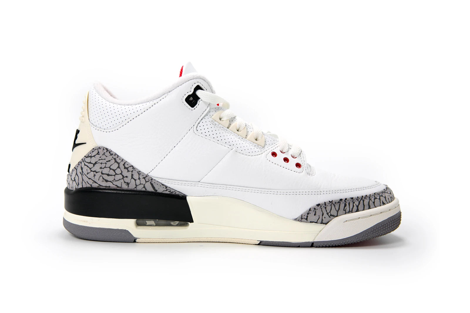 Die Fersenlasche trägt das klassische Nike Air-Branding, das die Retro-Authentizität des Modells unterstreicht und bei Fans für sofortige Begeisterung sorgt. Unter dem Fuß sorgt die sichtbare Air-Dämpfung für denselben Komfort, der den Jordan 3 damals revolutionär machte. Dieser Sneaker fühlt sich an wie ein Stück Basketball- und Sneaker-Geschichte, das neu zum Leben erweckt wurde — ein Modell, das jeder Sammler und Jordan-Fan in seiner Rotation haben sollte.