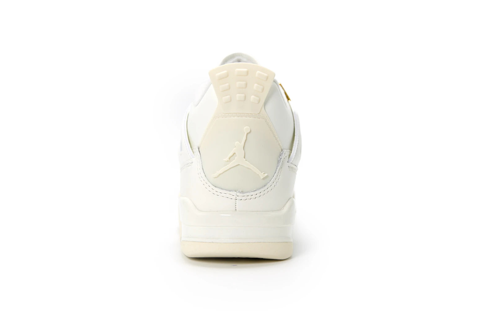 Der Air Jordan 4 Retro Gold Metallic (W) verbindet zeitlose Eleganz mit luxuriösen Akzenten und präsentiert die ikonische Jordan-4-Silhouette in einer edlen, minimalistischen Ausführung. Die gesamte Basis des Sneakers besteht aus einem weichen, cremigen Sail-Ton, der dem Modell eine schlichte, hochwertige Ästhetik verleiht. Die Kombination aus glattem Premium-Leder und atmungsaktivem Mesh in den Seitenteilen macht den Schuh optisch ausgewogen und sorgt gleichzeitig für Komfort und Struktur.