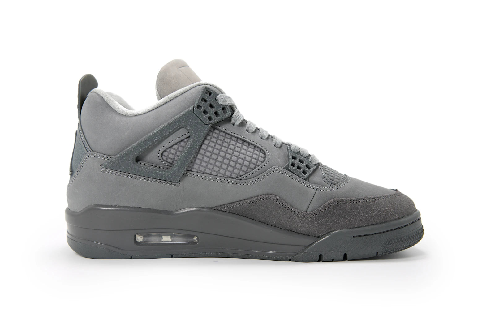 Wie beim klassischen AJ4 sorgen die typischen Elemente – darunter das seitliche Netzpanel, die geformten Flügelösen und die markante Fersenkappe – für den vertrauten Jordan-Look. Die Zwischensohle beherbergt ein sichtbares Air-Sole-Element, das für optimale Dämpfung und Komfort steht. Gleichzeitig bringt die edle graue Außensohle Stabilität und einen cleanen Abschluss des Designs.