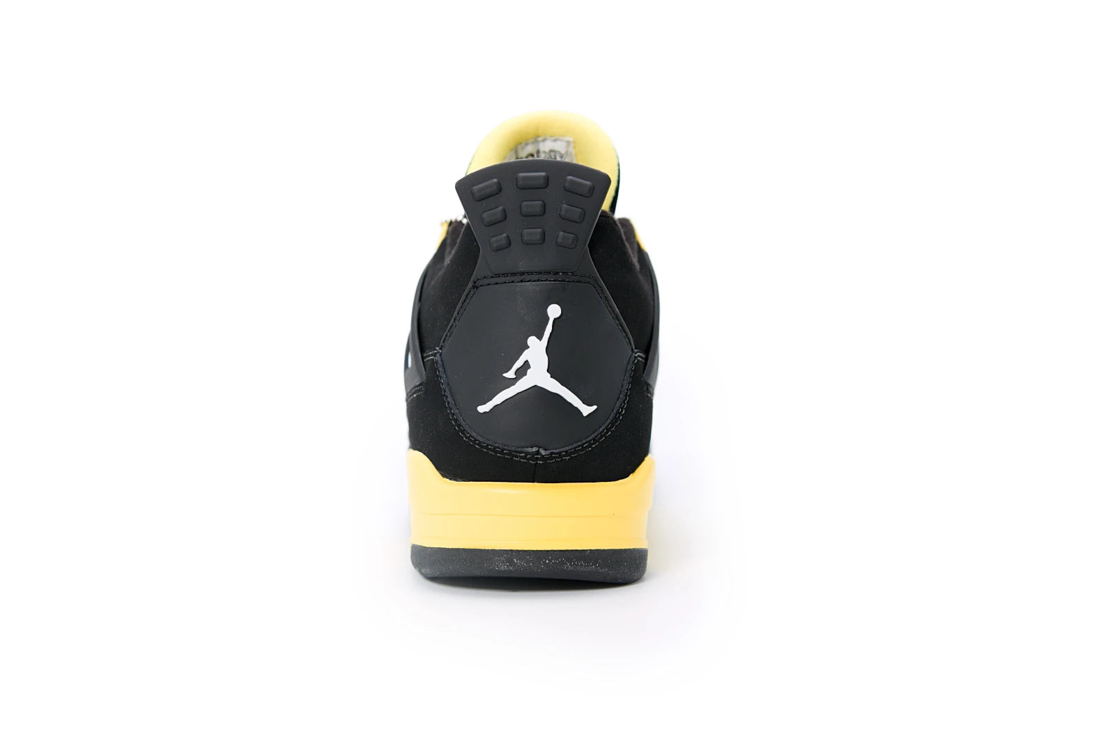 Der typische Air Jordan 4-Look bleibt vollständig erhalten: das geformte Fersenpanel mit Jumpman-Logo, das seitliche Mesh, die stabilen TPU-Wings und die robuste Zwischensohle mit sichtbarem Air-Element für maximalen Komfort. All diese Elemente kombinieren ikonisches Design mit zuverlässiger Performance, was den Thunder nicht nur ästhetisch, sondern auch funktional zu einem Klassiker macht.