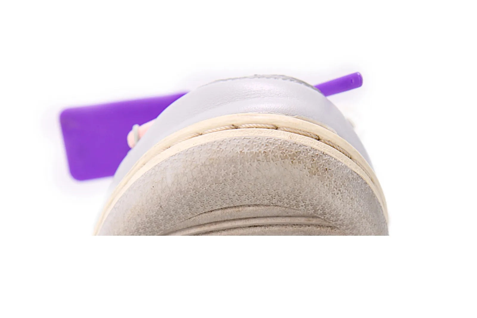Das Upper besteht aus hochwertigem Leder in hellen, neutralen Tönen und wird durch die typischen Off-White-Elemente ergänzt: die seitliche Typografie, das exponierte Schaumstoff-Finish an der Zunge, der ikonische Zip-Tie sowie das zusätzliche Schnürsystem, das dem Schuh seinen technischen Look verleiht. Die farbigen Akzente an Laces, Zunge und Midsole machen Lot 24 unverwechselbar und geben ihm eine eigene Identität innerhalb der 50er-Serie.