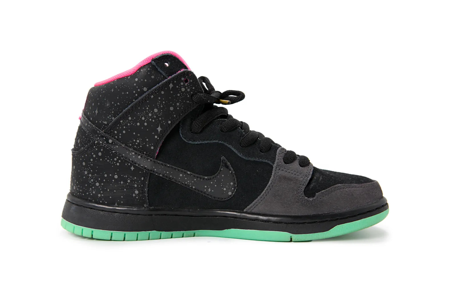 Der Nike SB Dunk High Premier Northern Lights ist einer der ikonischsten SB-Releases der 2010er-Jahre und eine Hommage an das faszinierende Naturphänomen der Polarlichter. Entstanden aus der Zusammenarbeit zwischen Nike SB und der legendären Skate-Boutique Premier, vereint dieser Sneaker ein mystisches Farbspiel mit hochwertiger Verarbeitung und einer tiefen Verbindung zur Skateboard-Kultur. Das Design spiegelt den nächtlichen Himmel wider, der von lebhaften Leuchterscheinungen durchzogen wird – ein magischer Look, der in der Sneakerwelt unverwechselbar ist.